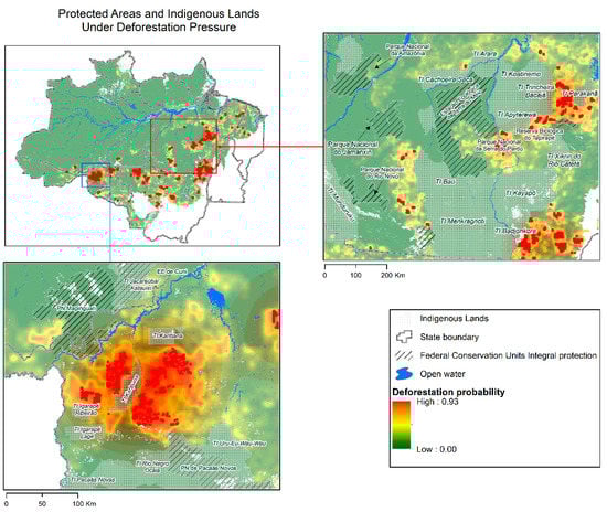 Adding to these environmental concerns is the growing threat to Indigenous communities posed by a lawless advancing frontier that is invading public lands, fueled in part by rhetorical encouragement from the current Brazilian federal government [14,15]. Deforestation within and around Indigenous lands and other protected areas has increased in recent years as part of the strategy of invaders to force lawmakers and the courts to reduce or completely degazette and transfer those lands to the private domain [16,17,18].