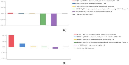 Whenever data was not available from the published literature, internet sources and the free OpenLCA database were used (secondary data). If the data were not available from Italian contexts, data relating to similar contexts were chosen. The LCI data (Supplementary S1: Data used in LCI) were processed using Microsoft Excel software