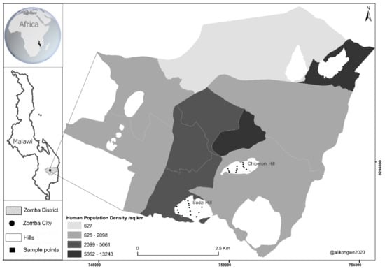 Likongwe, P.J.; Chimaimba, F.B.; Chiotha, S.S.; Mandevu, T.; Kamuyango, L.; Garekae, H. Urban Community Power: Enhancing Urban Forest Diversity and Reversing Ecosystem Disservices in Zomba City, Malawi. Land 2021, 10, 1258. https://doi.org/10.3390/land10111258