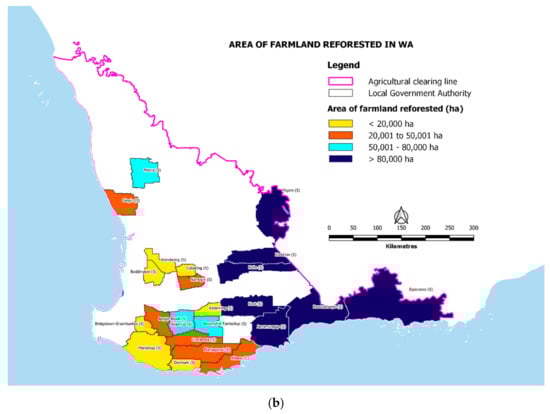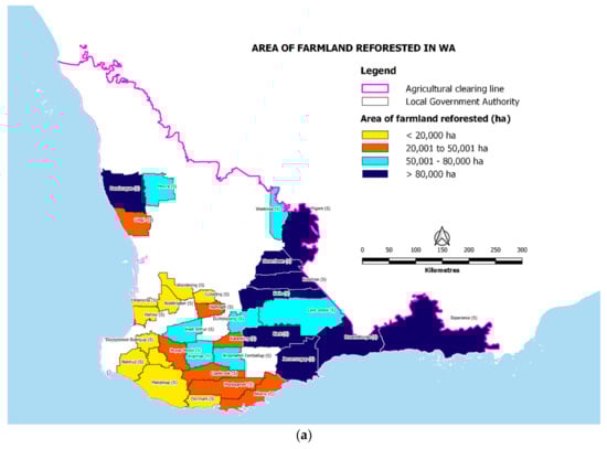 Accordingly, to fill this gap in the literature, this study examines how climate change will affect the affordability of achieving carbon neutrality in south-western Australia; an important agricultural region in Australia in which the most frequently applied method of sequestering carbon is reforestation. To set the scene for this study, the next sub-section describes the study region and draws on Kingwell [] to give an overview of the region’s agricultural emissions, the categories of emissions, and the current trajectory of emissions. An online appendix provides technical information on Australian agriculture as a source of emissions, and reforestation as a source of emissions abatement. Then follows an outline of what is known about the likely impacts of projected climate change on agricultural production and tree production in the study region. A range of scenarios regarding agricultural emissions and impacts of climate change on tree growth and tree survival are presented. These scenarios are embedded in a spatial linear programming model that reveals how agricultural carbon neutrality via reforestation in the study region can be achieved at the least cost. The modelling results are presented and discussed. Finally, concluding remarks are made regarding the cost of achieving carbon neutrality via reforestation in the study region.