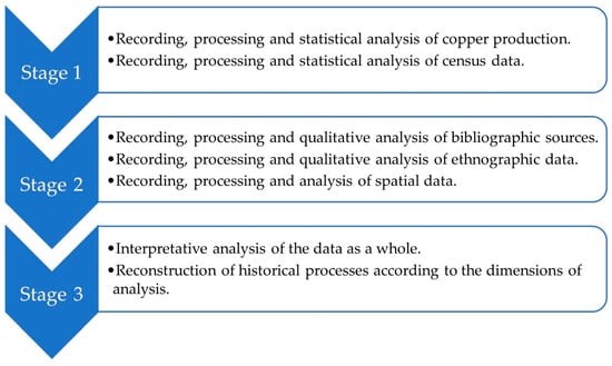 The statistical data were used to highlight the quantitative growth of copper production in mines relevant to the case study, as well as the expansion of the urban population in the zone. Information on the mining production was compiled from the databases of the state-run Chilean Copper Commission (Comisión Chilena del Cobre, COCHILCO), where production for each copper deposit was obtained for the 1960 to 2019 period. Information on the urban population was obtained from government population and housing censes conducted between 1907 and 2017. The information was processed through a univariate descriptive analysis of frequency distributions that enabled us to assemble time series [63].