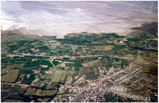 The indigenous peasantry, despite receiving state support at certain times, has become progressively weakened. During specific periods, supportive public actions and the farmers’ own appeals competed with other public policies in force at the same time—the ongoing support for copper extraction, the privatization of water resources, the limits on irrigation, and the promotion of urban growth—to lessen their potential impacts. Despite all of this, however, the peasants are virtually the only actors today that are sustaining the now-diminished agricultural activities at the oasis. While these activities continue to play a role in providing livelihoods, they also endure because they are entangled with the farmers’ traditional land-based way of life. We can thus see the intersection of different scales of economic and political processes in how certain forms of land use are configured and vary over time, from the international context to national policies and the dynamics unique to the territory and its inhabitants. Despite the intense deagrarianization of recent decades, the urban–agrarian linkage is still present in certain parts of the study area (Figure 7).