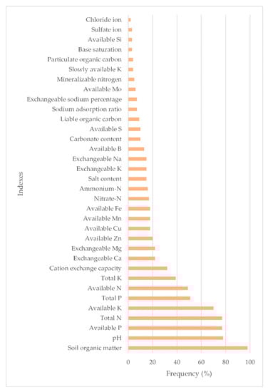 According to Section 3 and a large number of database documents, the following recommended index system was summarized. This index system closely revolved around the ecological function of the soil. It was proposed from three aspects: soil fertility, soil environment and regional policy, as shown in Table 4.