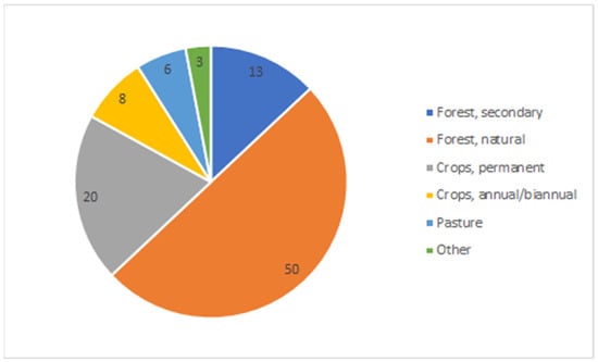 Percentage of land cover types on farms (<115 ha) in the Amazon region (0–2500 m) according to the 2012 agrarian census [].