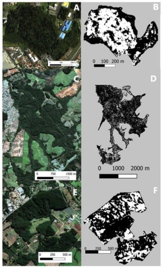 - Ribeiro, M.C.; Metzger, J.P.; Martensen, A.C.; Ponzoni, F.J.; Hirota, M.M. The Brazilian Atlantic Forest: How much is left, and how is the remaining forest distributed? Implications for conservation. Biol. Conserv. 2009, 142, 1141–1153. [Google Scholar] [CrossRef]