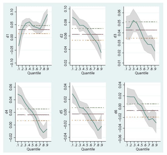 Changes of coefficients of d1–d6 in different quantile regression results in Equation (8).