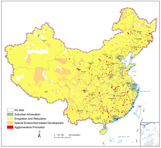 China, with its rapid urbanization, is facing the village decay problem, the extent and intensity of which is an extremely prominent example in the developing world [12]. To address the problem, the Chinese central government adopted the Strategic Plan for Rural Revitalization (2018–2022) (the Plan, hereafter) on 31 May 2018. The Plan proposes to divide all villages into four types, including (1) Agglomerative Promotion, (2) Suburban Annexation, (3) Special Endowment-based Development, and (4) Out-migration and Relocation. As their names suggest, the meanings of the four types are straightforward. Among them, the first three types of villages have certain factor endowments such as locational advantages or special economic and/or cultural resources, and the Plan supports their revitalization in different forms. The fourth category of villages, however, lacks the necessary endowments for development, and the Plan implies that they will eventually disappear through “Out-migration and Relocation”. The typology of the Plan based on factor endowments is in line with the basic theory of development economics [13,14], and is also embedded in the idea of rural typology [15]. Rural typology asserts that rural land can be divided into identifiable and relatively homogeneous units and that the identification of such units facilitates the understanding of rural character, administration, and policymaking [15,16,17,18]. The Plan, though, does not specify how the four types of villages are identified, nor does it give any zoning maps of the distribution of the four types of villages across the country at any granularity. Admittedly, at the national scale, it is difficult to make such zoning for millions of villages, not to mention that the formulation of specific rural revitalization policies is also a local rather than a central matter. Nevertheless, it is still meaningful to examine the country’s rural typology by means of geographic zoning, to identify the types of villages based on their factor endowments, and to determine their prospects of revitalization or decay. On the one hand, for villages with revitalization potential, policymakers can take measures to assist their development and facilitate their transformation into the appropriate types specified in the Plan. On the other hand, for villages that will inevitably decay, measures can also be taken to make the process of their demise smooth and orderly, such that long and unnecessary suffering for the villagers concerned can be avoided. Overall, a national-level rural typological zoning for rural revitalization can help provide basic, directional guidance for local-level policymaking, and is thus is a very necessary task.