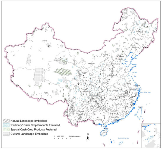 Based on their possession of different cultural or agricultural resource endowments, the second round of clustering of the villages in the Special Endowment-based Development category show that they could be further subdivided into four sub-types: Natural Landscape-Embedded, Cultural Landscape-Embedded, “Ordinary” Cash Crop Products Featured, and Special Cash Crop Products Featured (Figure 6). Overall, we summarize the natural and socioeconomic characteristics, as well as their possession of special factor endowments of all types and sub-types of villages in Table 3.