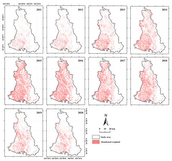 3.3. Abandoned Cropland Identification from 2011 to 2020