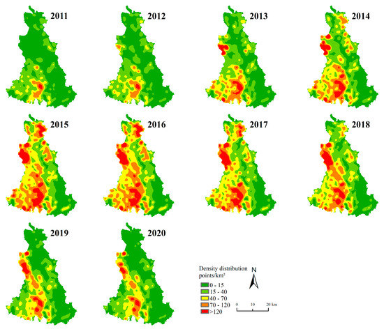 - Cai, X.J.; Zhi-Feng, W.U.; Cheng, J. Analysis of road network pattern and landscape fragmentation based on kernel density estimation. Chin. J. Ecol. 2012, 31, 158–164. [Google Scholar] [CrossRef]