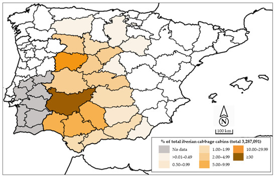 Distribution of Iberian Pig in the Iberian Peninsula (2018). Source: [57]. Authors own elaboration.