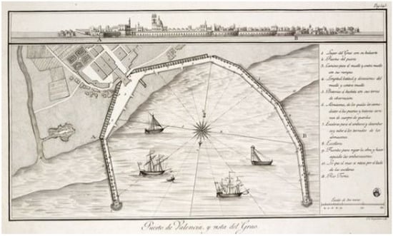 Güelda Valencia port plan, 1686 (Source: Valenciaport.com accessed on 10 June 2021).