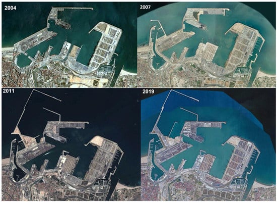 Valencia port layout in 2004, 2007, 2011, and 2019 (Source: Valenciaport.com accessed on 10 June 2021).