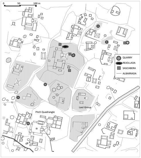 - Guijarral: Home gardens that are close to the residences formed one component of the settlement pattern in Guijarral. This kind of garden is complemented by distant infields and outfields where major crops were cultivated. This purposefully embedded the population spatially, environmentally, economically, and spiritually in the built environment [87].