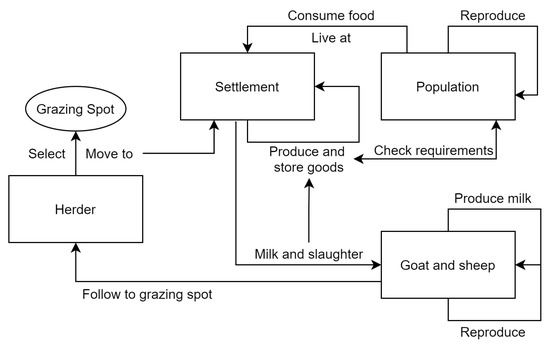 This agent also checks the goat and sheep herds for lactating individuals. Then, the selected agents are milked in descending order of quantity of milk. Following the description of Degen [82], approximately 50 goats and sheep can be milked each day, and the milk is stored at the settlement.
