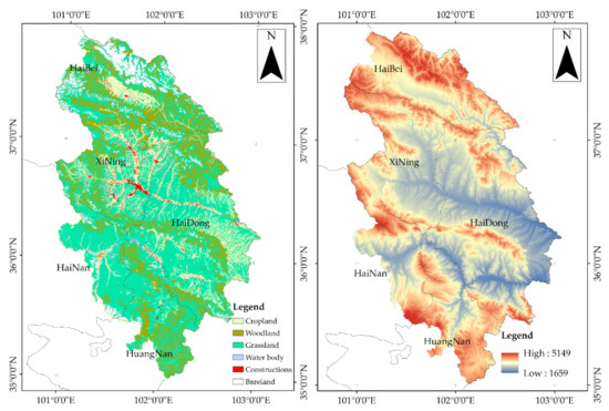 - Zhao, D.Y.; Zeng, Y.N. Land use changes and ecological risk assessment in eastern Qinghai Plateau: A case study in Haidong, Qinghai, China. J. Desert Res. 2016, 36, 1190–1197. [Google Scholar]