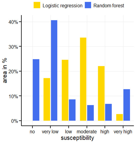 Landslides are often strongly correlated with multiple causes, resulting in complex parameterisations. Understanding the relationship between the existing soil landslide distribution and the soil landslide influencing factors is a fundamental requirement for soil landslide susceptibility mapping. This study aims to create a landslide susceptibility prognosis of the slopes in the study area using statistical predictive modelling for future use in land use planning. The fifteen generated layers of causative factors were used as predictor variables and were grouped into five classes: topographic, geological, hydrological, soil, and land cover. We chose two modelling methods: logistic regression and random forests. The resulting models were compared with the real occurrence of landslides. In this article, we comprehensively evaluate the susceptibility of flysch areas to landslides in the Western Carpathians, where this methodology has not yet been used. Until now, multivariate or bivariate analyses have been used here. The Kysuce region was selected as a model area as it belongs to the Western Carpathian flysch zone and is composed of sedimentary rocks, primarily sandstone, and clay. The characteristics of these rocks significantly affect the relief and water regime. They are prone to erosion and with their low permeability they can cause frequent landslides during torrential rains.
