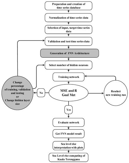 Figure 6. Flowchart of sea-level rise simulation and prediction using a Feed-Forward Neural Network model.