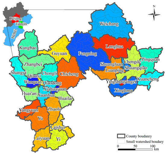 The Poverty Belt around Beijing and Tianjin provides an ideal site for the research on ecological compensation, as it is a typical contiguous poverty zone and an ecologically fragile area, but serves as an important ecological barrier in the Beijing–Tianjin–Hebei region [20,21]. The Poverty Belt around Beijing and Tianjin is located in Hebei Province—a coastal province that contains the largest number of national-level poverty-stricken counties in China, including 25 of the 39 national-level poverty-stricken counties. The coordinated development of the Beijing–Tianjin–Hebei region is one of the major national development strategies of China, while the construction of the ecological environment is one of the key fields in which prior breakthroughs should be achieved according to the “Beijing–Tianjin–Hebei Coordinated Development Plan Outline” [22,23]. Establishment of a diversified ecological compensation mechanism so as to increase the provision of essential ecosystem services is a major strategic demand for the coordinated development of the Beijing–Tianjin–Hebei region, and can provide an important means of realizing regional sustainable development in the new era [22,24]. It is therefore of extremely important practical significance to promote coordinated development, ensuring ecological safety and promoting the construction of ecological civilization in the Beijing–Tianjin–Hebei region in order to carry out in-depth exploration of the ecological compensation in the Poverty Belt around Beijing and Tianjin in this macro background [25,26].