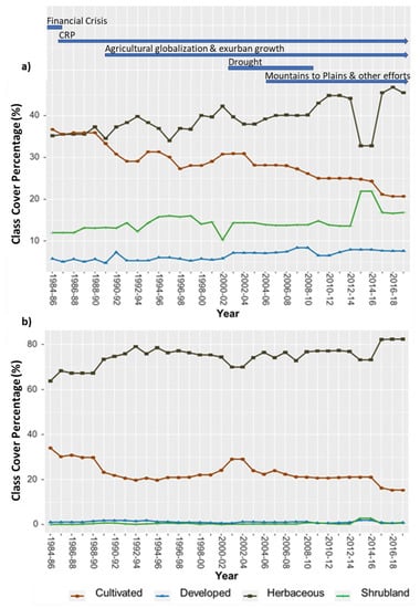 4.1. Land Change Patterns: Cultivated to Herbaceous Cover