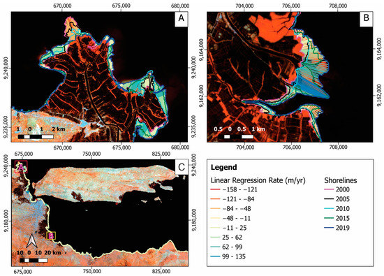 3.2. Shoreline Changes from 2000 to 2019