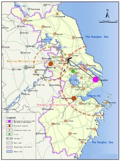 Lijia is located in the southeast of the Wujin district, Changzhou city, close to the Wujin national high-tech zone. Moreover, it is on the fringe of the Shanghai and Nanjing metropolitan regions (Figure 2). Its area comprises 58.23 km2 and it contains 14 villages with 27,958 households and a permanent population of 88,908. It is about 10 km away from the central Wujin district and 170 km away from Shanghai. The town is named after the Lee family’s bridge, and it is famous for its 10 bridges, which are more than 100 years old. With 865.61 hectares of river surface, occupying 14.87% of the town’s area, Lijia has rich resources and village characteristics. However, according to the official 2015 report on land-use quality, this resource was not utilized as most rivers are polluted. Some of the most severe causes of dissatisfaction that villagers complained of were the environmental pollution of rivers and the shortage of public leisure places.