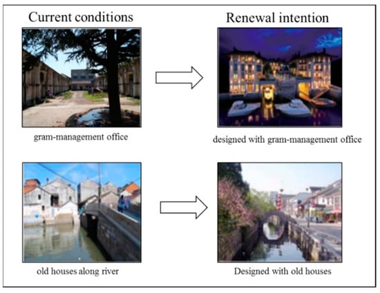By connecting policy and the implementation carried out, we explored dynamic stakeholders in the rural revival process. As Figure 6 shows, in the resource identification phase, township government and collective groups adopt a leading role in the exploration of stock land in multifunctional land use. Not only industrial land, but also non-industrial land, including abandoned public spaces and rural settlements, are identified as valuable land resources in the planning policy. When there is a conflict of interest with villagers during the policy implementation, they negotiate. Collective groups negotiate with villagers to explain the goals of transformation and provide several compensation plans to guarantee villagers’ rights. The negotiation process is considered a coupling process with interests of the individual villager and collective groups []. Most compensation plans include several options for guaranteeing villagers’ and collective groups’ economic benefits. In the new master plan, besides different methods of income, rural culture and villagers’ livability were also included. In particular, for the abandoned public buildings and old, traditional buildings, township governments prefer to transform them into public service infrastructure. This transformation towards rural livability needs to be discussed further [,]. In the first phase, the township government carefully deals with this negotiation process to avoid social conflicts with villagers.