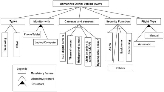 Feature diagram for Unmanned Aerial Vehicle (drone).