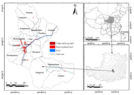 - Guo, X.; Niu, S.; Wu, W.; Ma, L. Characters of rural settlement spatial distribution and its influencing factors in Loess hilly area of Gansu Province: A case of Qinan County, Gansu Province. J. Arid Land Resour. Environ. 2010, 24, 27–32. [Google Scholar]