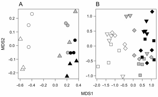 - Anderson, M.J.; Ellingsen, K.E.; McArdle, B.H. Multivariate dispersion as a measure of beta diversity. Ecol. Lett. 2006, 9, 683–693. [Google Scholar] [CrossRef]