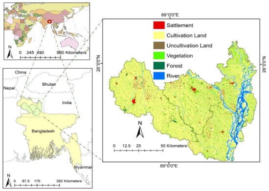 - Bangladesh Bureau of Statistics (BBS). Statistics and Informatics Division (SID) Ministry of Planning: Population and Housing Census 2011; Bangladesh Bureau of Statistics: Dacca, Bangladesh, 2011. [Google Scholar]