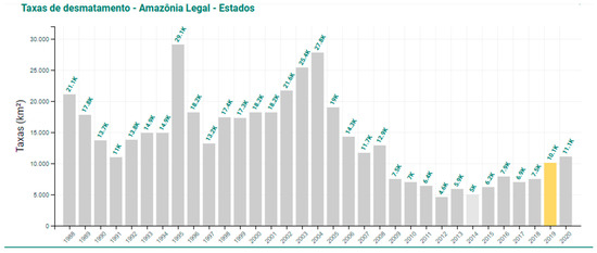 - Observação da Terra—A Estimativa da Taxa de Desmatamento por Corte Raso Para a Amazônia Legal. Available online: http://terrabrasilis.dpi.inpe.br/en/home-page/ (accessed on 15 January 2021).