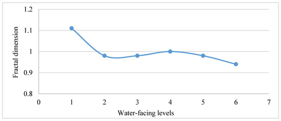 Fractal dimension curve of rural mountain settlements in terms of water-facing level.