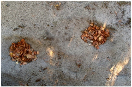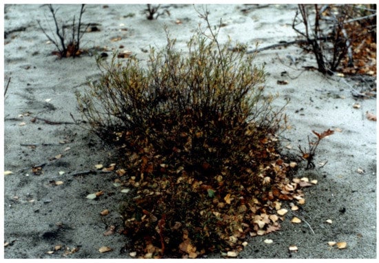 - Van Rheenen, J.W.; Werger, M.J.A.; Bobbink, R.; Daniels, F.J.A.; Mulders, W.H.M. Short-term accumulation of organic matter and nutrient contents in two dry sand ecosystems. Vegetatio 1995, 120, 161–171. [Google Scholar] [CrossRef]