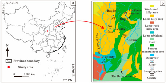 Loess forms through the deposition of aeolian sediments [1] in arid or semi-arid environments, so it normally has unique structural properties [2] and water sensitivity [3,4]. In many cases, such properties can result in negative effects, including extensive surface erosion [5,6] and catastrophic geological hazards [7,8,9]. Covering an estimated total area of 6.4 × 105 km2, the Loess Plateau has the most complex loess topography in China and, therefore, exhibits great environmental vulnerability to human activities [10,11]. Especially in recent years, frequent and intense disturbance by external factors, including human engineering activities [12,13] and extreme climate change [14,15], have exacerbated this vulnerability. Hence, loess is regarded as one of the problematic soils that requires attention in this region [16,17]. Moreover, knowing the situation and the solutions to one of the areas of the world affected by land degradation and desertification processes is relevant to achieve the sustainable development goals of the United Nations [18,19]. This will help to achieve the land degradation neutrality challenge [20].