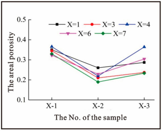 Areal porosities of the samples, obtained through scanning electron microscopy (SEM).