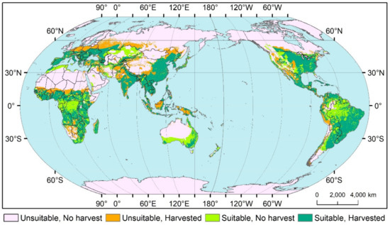 - Fischer, G.; Nachtergaele, F.; Prieler, S.; Van Velthuizen, H.; Verelst, L.; Wiberg, D. Global Agro-Ecological Zones Assess-Ment for Agriculture (GAEZ 2008); IIASA: Laxenburg, Austria; FAO: Rome, Italy, 2008. [Google Scholar]