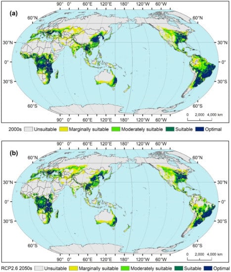 | Maize suitability | 2000s | RCP2.6 | RCP8.5 | RCP2.6 | RCP8.5 | ||||