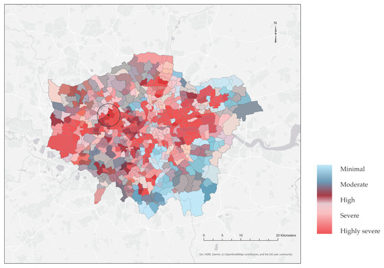 Greater London’s socio-environmental vulnerability map. Stonebridge is located in the middle of the black circle.