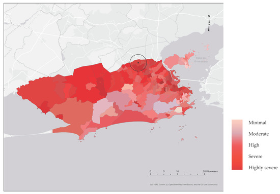 Rio de Janeiro’s vulnerability map. Pavuna neighbourhood appears in the middle of the black circle.
