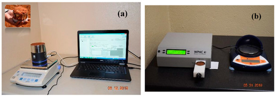 Actual photograph of (a) soil water retention curve (SWRC) equipment hydraulic property analyzer (HYPROP) and (b) WP4C dewpoint potentiometer for creating experimental SWRCs.