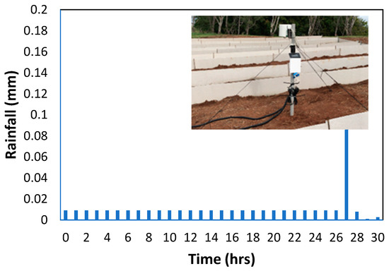 Rainfall data applied over a 30-day period with rain gauge and ZL6 data logger installed at Ija site (inserted picture).