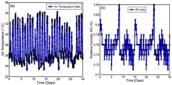 Monthly climate data (a) air temperature; and (b) relative humidity.