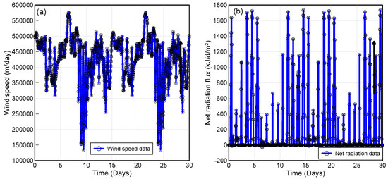 Daily air temperature data for the period of one month (November 2019) were obtained from the ZL6 data logger installed at the Ija site. Similarly, the wind speed, relative humidity and net radiation data were obtained from a nearby weather station (Figure 8 and Figure 9).