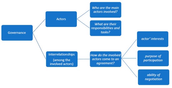 The interrelationships between government and non-governmental actors are intensively discussed in the literature [45,75]. Nuhu [79], for instance, discusses peri-urban land governance by analyzing the power relations among actors involved. In order to understand the governance outcomes of climate change, Hamilton and Lubell [80] examine the collaborative interactions among actors. Although scholars address different aspects associated with “interrelationships”, most of them argue that the investigation of how the involved actors come to an agreement is crucial [41,47,81]. The analysis thus involves a discussion about actors’ interests, purposes of participation, and the ability of negotiation [82,83].