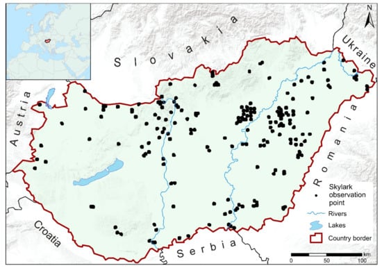 In the terrestrial ecosystems of the world, the dominant land-cover category is agriculture (38%), including the arable-land use type [1]. In Europe, this value is much higher, at 45% (EBCC, 2015). The agricultural land-cover category contains various land-use types with different levels of human impact. The heterogeneity and spatial structure of these land-use/land-cover (LULC) patches vary greatly across rural areas, which has strong impact on farmland-bird diversity in Europe [2,3]. Many articles have determined that the decreasing trend of farmland birds is strongly connected with the intensity of agricultural management (level of use of fertilizers etc.) [4,5,6,7]. Very few studies have investigated the dramatic decline of the abundance of farmland birds, and its connection with change in landscape structure and land-cover heterogeneity [7,8,9]. There are some regional (country)-scale studies that analyze the connection between land-cover types and farmland-bird population data [10,11,12,13,14,15]. These studies have indicated that the abundance of farmland birds is significantly connected with the intensity of agricultural cultivation, crop heterogeneity, and land-use change. Most articles focus on small, local study areas and analyzing the connection between Eurasian skylark (Alauda arvensis) abundance, and the proportions of crop type, height, coverage and heterogeneity [4,6,10,16,17,18,19]. The skylark does not prefer the fragmented landscapes by urbanized area, road network, hedgerows and heterogeneous land cultivation areas [7,20]. The agriculture is the dominant land use (matrix) of the European NATURA 2000 network, where the size and shape characteristics of different LULC patches, and the land cover heterogeneity can be essential for the protection of farmland bird species. Therefore, we hope that our results can be adding some new suggestions for the landscape planning and habitat design of national parks, NATURA 2000, and other protected areas. Our research also can provide important component for achieving the goals of the EU Birds directive [21].