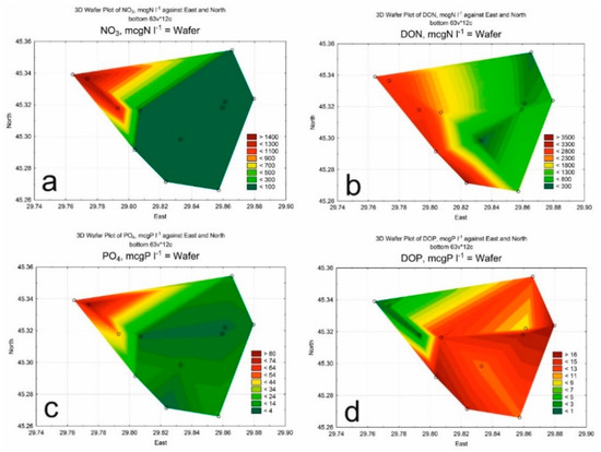 | PO43−, μgP L−1 | 10.60 | 12.40 | 3.92 | 12.40 | 63.20 | 80.40 | 46.20 | 5.73 | 5.12 | 7.24 | 8.75 | 5.73 |