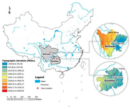 Baiyun Village is located in the Hongguang Subdistrict, Pi County, Chengdu City, Sichuan Province. The area of Baiyun Village is 1.72 km2, where the areas of the collective construction land and the agricultural land are 436.7 and 1955.85 mu, respectively. It has eight communities and the total number of residents is 1805, with an average gross personal income of 14,000 CNY/year. Huilong Village is located in Meijiang Subdistrict, Meitan County, Zunyi City, Guizhou Province. The area of Baiyun Village is 12.5 km2, where the area of agricultural land is 4500 mu. It has seven communities, with a total of 3468 residents.