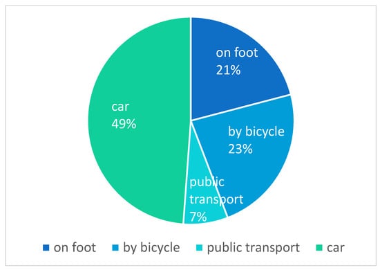 With 41% the share of employed coworker in this survey is higher than the average numbers in coworking spaces []. That could indicate that tenants avoid commuting to headquarters of remote employers, save time for the commuting, relieve traffic infrastructure and with that reduce the CO2 emission. Considering the increasing traveling distance and time [,], it is an advantage to avoid the commuting at least on some days of the week. A majority of the respondents are driving to the coworking space by car, only a small amount could go by bike or on foot (see Figure 3). Reasons for this variation could be a lower population density at certain locations, which increases the catching area for such a coworking space, as long as the number of users of rural coworking spaces is still low. Only a small group of users live so close that they can walk or take the bike. It is typical for rural regions that longer travel distances between home and destination are covered by car [,]. Only short distance commuters are saving time saving if it is done on foot or by bicycle []. The background of people is also broad. One can find freelancers, entrepreneurs and various types of employees in rural coworking spaces. The age distribution is broader than in coworking spaces in an urban environment []. This might be related to the motivation to use rural coworking spaces as a means to spare the traveling time to a distant company office.