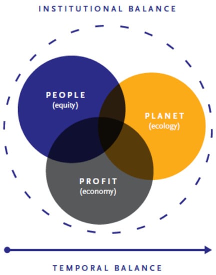 Despite its rather long history, sustainability as a concept is still characterized by multiple interpretations and rather blurred boundaries. []. The term was coined by the International Union for Conservation of Nature and Natural Resources (IUCN) in the early 1980s, and then adopted by the Brundtland Report a few years later, to indicate “development that meets the needs of the present without compromising the ability of future generations to meet their own needs” [] (p. 54). As a result, during the last three decades, sustainable development has been at the center of the international research agenda []. Indeed, it has increasingly taken a central position in recent EU regional and urban politics, as evidenced for example by the decision to undertake the ESPON SUPER project. Nevertheless, although there is a “vast array of available best practices, little is known about the ways in which best practice is constructed, used, and contested, or of its implications for urban sustainability” [] (p. 1029). Drawing on the consolidated literature on the topic, the ESPON SUPER project understands sustainability as characterized by three main aspects: temporal, thematic and institutional balance (see Figure 1). In particular, the temporal balance refers to the capacity to maintain long-term sustainable development for future generations and to enable the satisfaction of their needs []. Although often underestimated, certain factors, such as a governance quality and the durability of policies (e.g., the stability of funding), seem to effectively enhance sustainable urbanization processes [] (p. 2). Moreover, among the characteristics that support the effectiveness of urban regeneration processes are those policies that envisage long-term sustainable targets, and which are supported by a strong political will (e.g., the UK brownfield targets, see Section 4.1.2). On the other hand, the thematic balance refers to three dimensions generally referred to as the “three Es” (i.e., economy, ecology, equity) [] or the “three Ps” (i.e., people, planet, profit) of sustainability []. According to the literature, any intervention faces the challenge of reconciling and enabling the coexistence of these dimensions []. Consequently, each of these dimensions has to be fulfilled without sacrificing the others, in order to achieve a development trajectory that is truly sustainable []. Finally, sustainability also depends on the institutional balance. For various reasons, institutional sustainability is a challenging issue for those working towards the development and implementation of sustainable urbanization policies. In fact, decisions and actions should be implemented through transparent and effective mechanisms, in line and coherent with the overall institutional framework in which they are adopted []. Thus, sustainable development can also be seen as a “social and political construct and, as such, the study of the operationalization of sustainable development through the implementation of specific policies provides the critical focus for research” [] (p. 1).